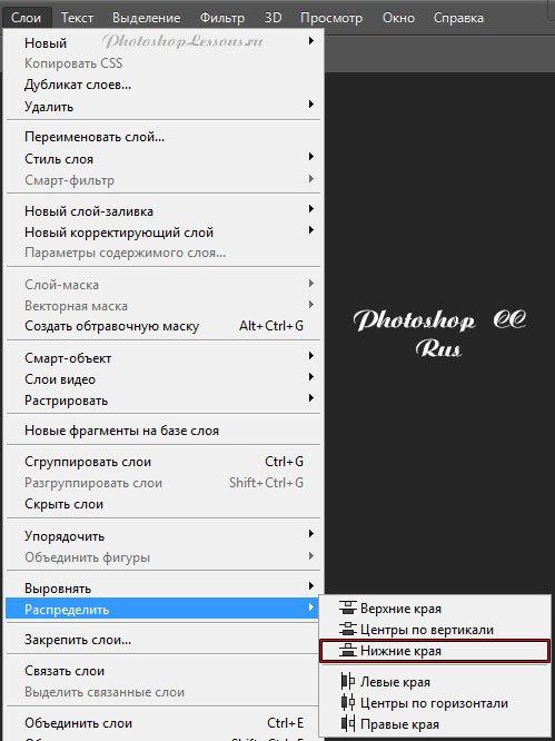 | Перевод Layer - Distribute - Bottom Edges (Слои - Распределить - Нижние края)Перевод и месторасположение Layer - Distribute - Bottom Edges (Слои - Распределить - Нижние края) на примере Photoshop CC (Eng/Rus). На изображениях ниже вы можете наглядно увидеть месторасположение и перевод термина Layer - Distribute - Bottom Edges (Слои - Распределить - Нижние края) на примере Английской и Русской версии Photoshop CC (2014). ![]() ![]() |