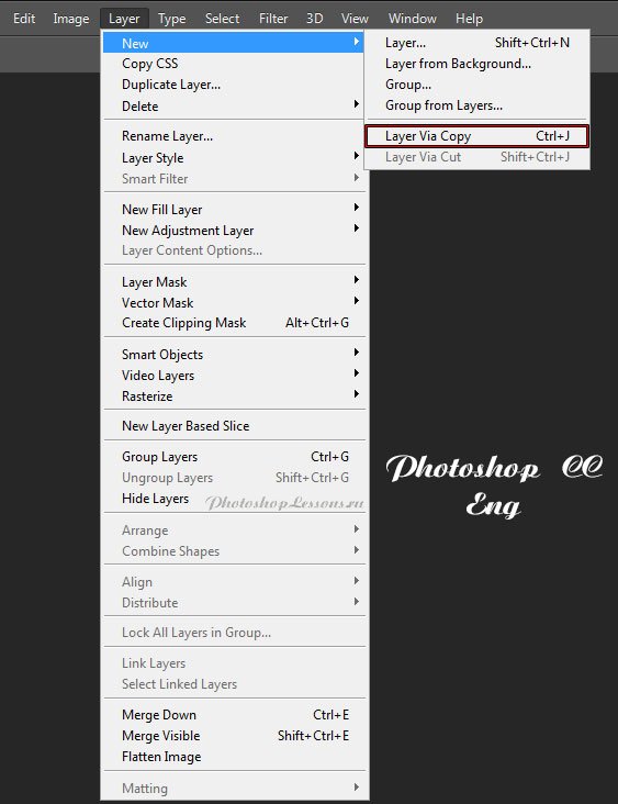 | Перевод Layer - New - Layer Via Copy (Слои - Новый - Скопировать на новый слой / Ctrl+J)Перевод и месторасположение Layer - New - Layer Via Copy (Слои - Новый - Скопировать на новый слой) на примере Photoshop CC (Eng/Rus). На изображениях ниже вы можете наглядно увидеть месторасположение и перевод термина Layer - New - Layer Via Copy (Слои - Новый - Скопировать на новый слой / Сочетание клавиш «Ctrl+J») на примере Английской и Русской версии Photoshop CC (2014). ![]() ![]() |
