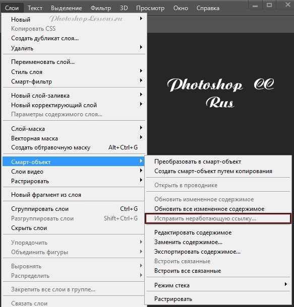 | Перевод Layer - Smart Objects - Resolve Broken Link (Слои - Смарт-объект - Исправить неработающую ссылку)Перевод и месторасположение Layer - Smart Objects - Resolve Broken Link (Слои - Смарт-объект - Исправить неработающую ссылку) на примере Photoshop CC (Eng/Rus). На изображениях ниже вы можете наглядно увидеть месторасположение и перевод термина Layer - Smart Objects - Resolve Broken Link (Слои - Смарт-объект - Исправить неработающую ссылку) на примере Английской и Русской версии Photoshop CC (2014). ![]() ![]() |