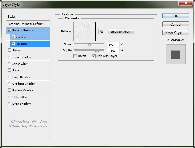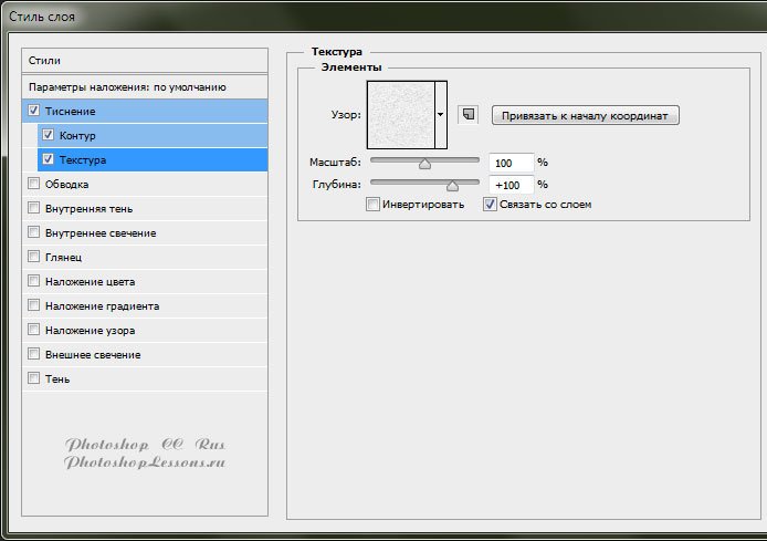 | Перевод Layer Style - Bevel & Emboss - Texture (Стиль слоя - Тиснение - Текстура)Перевод и месторасположение Layer Style - Bevel & Emboss - Texture (Стиль слоя - Тиснение - Текстура) на примере Photoshop CC (Eng/Rus). Узнать как перейти в Blending Option (Параметры наложения / Окно «Стиль слоя» (Layer Style)) можно в материале по ссылке - «Как перейти в Blending Option (Параметры наложения) в Фотошопе». На изображениях ниже вы можете наглядно увидеть месторасположение и перевод Layer Style - Bevel & Emboss - Texture (Стиль слоя - Тиснение - Текстура) на примере Английской и Русской версии Photoshop CC (2014). ![]() ![]() Стиль слоя - Тиснение - Текстура - Элементы (Elements)Pattern - Узор; Scale - Масштаб; Depth - Глубина; Invert - Инвертировать; Link with Layer - Связать со слоем; |