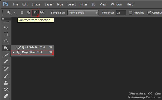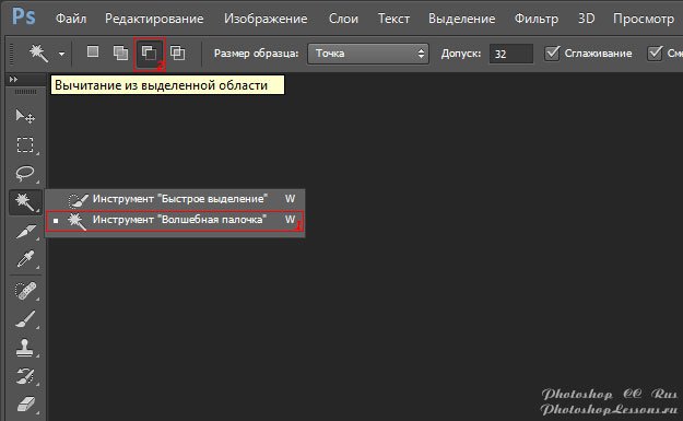 | Magic Wand Tool - Subtract from selection (Инструмент «Волшебная палочка» - Вычитание из выделенной области)Перевод и месторасположение Magic Wand Tool - Subtract from selection (Инструмент «Волшебная палочка» - Вычитание из выделенной области) на примере Photoshop CC (Eng/Rus). На изображениях ниже вы можете наглядно увидеть месторасположение и перевод Magic Wand Tool - Subtract from selection (Инструмент «Волшебная палочка» - Вычитание из выделенной области) на примере Английской и Русской версии Photoshop CC (2014). ![]() ![]() |