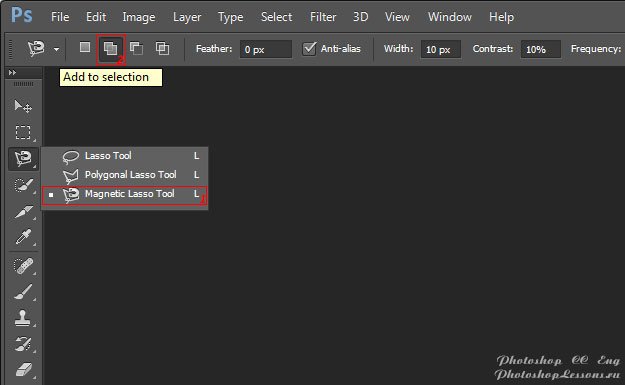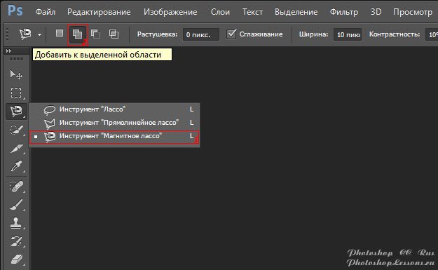 | Перевод Magnetic Lasso Tool - Add to selection (Инструмент «Магнитное лассо» - Добавить к выделенной области)Перевод и месторасположение Magnetic Lasso Tool - Add to selection (Инструмент «Магнитное лассо» - Добавить к выделенной области) на примере Photoshop CC (Eng/Rus). На изображениях ниже вы можете наглядно увидеть месторасположение и перевод Magnetic Lasso Tool - Add to selection (Инструмент «Магнитное лассо» - Добавить к выделенной области) на примере Английской и Русской версии Photoshop CC (2014). ![]() ![]() |