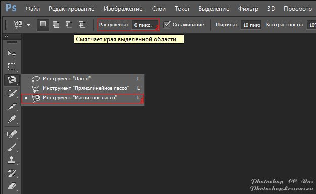 | Перевод Magnetic Lasso Tool - Feather (Инструмент «Магнитное лассо» - Растушевка)Перевод и месторасположение Magnetic Lasso Tool - Feather (Инструмент «Магнитное лассо» - Растушевка) на примере Photoshop CC (Eng/Rus). На изображениях ниже вы можете наглядно увидеть месторасположение и перевод Magnetic Lasso Tool - Feather (Инструмент «Магнитное лассо» - Растушевка) на примере Английской и Русской версии Photoshop CC (2014). ![]() ![]() |