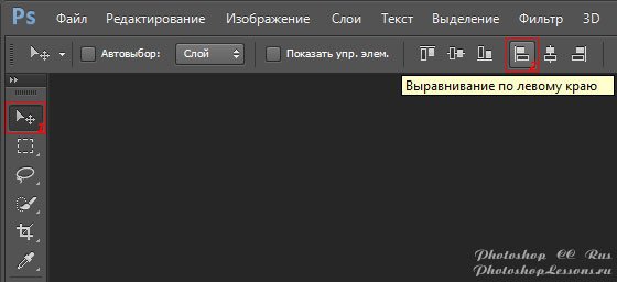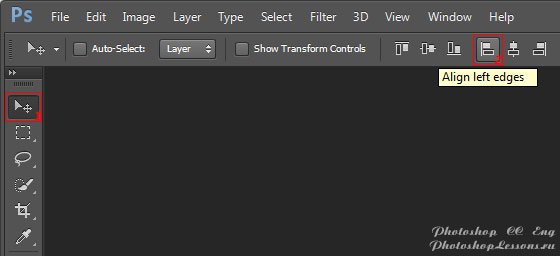 | Перевод Move Tool - Align left edges (Инструмент «Перемещение» - Выравнивание по левому краю)Перевод и месторасположение Move Tool - Align left edges (Инструмент «Перемещение» - Выравнивание по левому краю) на примере Photoshop CC (Eng/Rus). На изображениях ниже вы можете наглядно увидеть месторасположение и перевод Move Tool - Align left edges (Инструмент «Перемещение» - Выравнивание по левому краю) на примере Английской и Русской версии Photoshop CC (2014). ![]() ![]() |