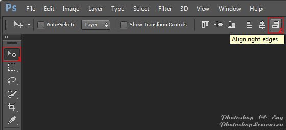 | Перевод Move Tool - Align right edges (Инструмент «Перемещение» - Выравнивание по правому краю)Перевод и месторасположение Move Tool - Align right edges (Инструмент «Перемещение» - Выравнивание по правому краю) на примере Photoshop CC (Eng/Rus). На изображениях ниже вы можете наглядно увидеть месторасположение и перевод Move Tool - Align right edges (Инструмент «Перемещение» - Выравнивание по правому краю) на примере Английской и Русской версии Photoshop CC (2014). ![]() ![]() |