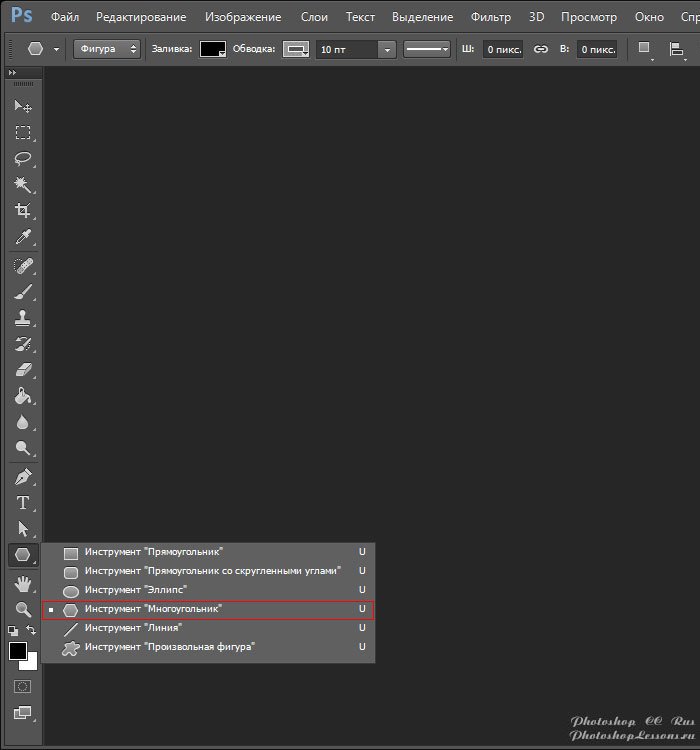 | Перевод Poligon Tool (Инструмент «Многоугольник» / U)Перевод и месторасположение Poligon Tool (Инструмент «Многоугольник» / U) на примере Photoshop CC (Eng/Rus). На изображениях ниже вы можете наглядно увидеть месторасположение и перевод Poligon Tool (Инструмент «Многоугольник» / Клавиша «U») на примере Английской и Русской версии Photoshop CC. ![]() ![]() |