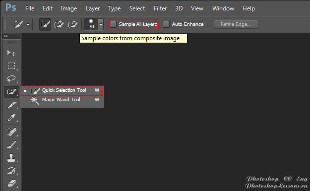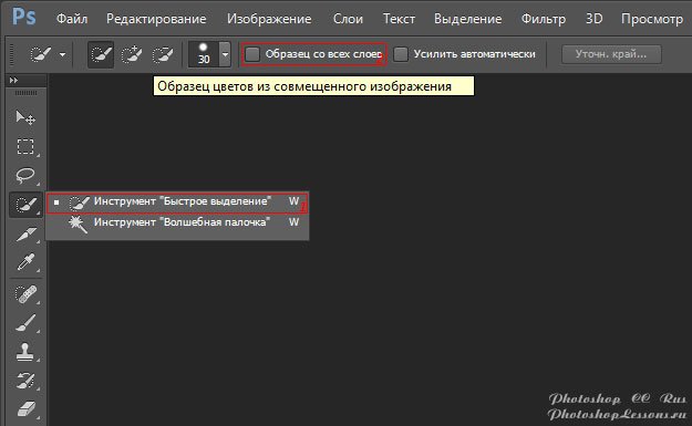| Перевод Quick Selection Tool - Sample All Layers (Инструмент «Быстрое выделение» - Образец со всех слоев)Перевод и месторасположение Quick Selection Tool - Sample All Layers (Инструмент «Быстрое выделение» - Образец со всех слоев) на примере Photoshop CC (Eng/Rus). На изображениях ниже вы можете наглядно увидеть месторасположение и перевод Quick Selection Tool - Sample All Layers (Инструмент «Быстрое выделение» - Образец со всех слоев) на примере Английской и Русской версии Photoshop CC (2014). ![]() ![]() |