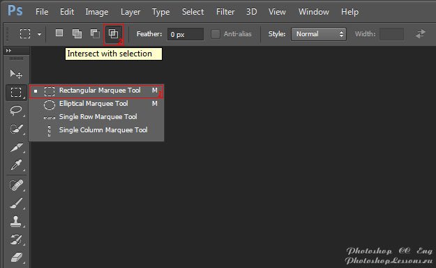 | Rectangular Marquee Tool - Intersect with selection (Инструмент «Прямоугольная область» - Пересечение с выделением)Перевод и месторасположение Rectangular Marquee Tool - Intersect with selection (Инструмент «Прямоугольная область» - Пересечение с выделенной областью) на примере Photoshop CC (Eng/Rus). На изображениях ниже вы можете наглядно увидеть месторасположение и перевод Rectangular Marquee Tool - Intersect with selection (Инструмент «Прямоугольная область» - Пересечение с выделенной областью) на примере Английской и Русской версии Photoshop CC (2014). ![]() ![]() |
