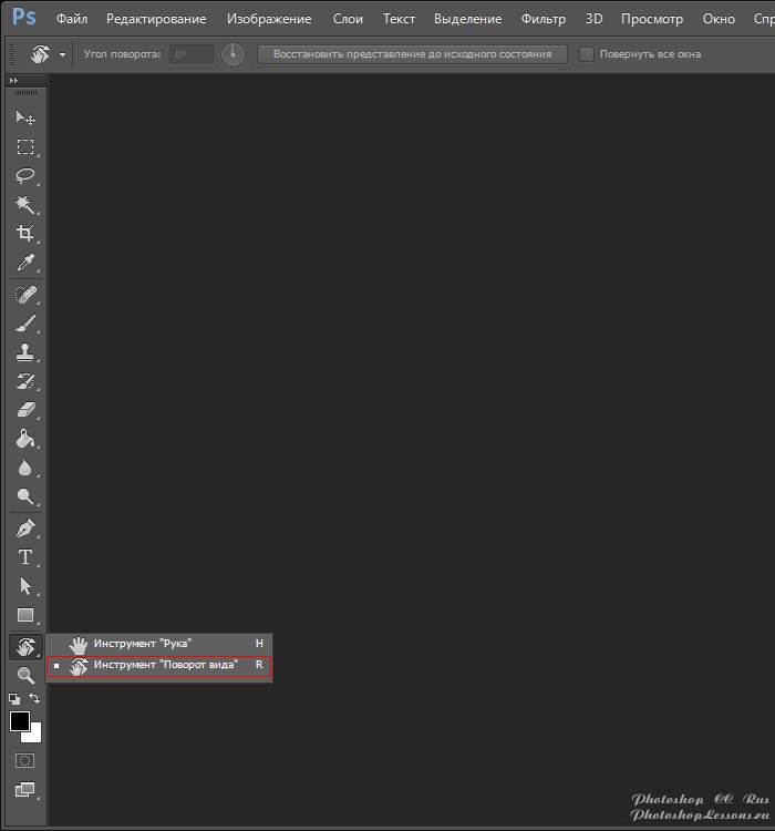 | Перевод Rotate View Tool (Инструмент «Поворот вида» / R)Перевод и месторасположение Rotate View Tool (Инструмент «Поворот вида» / R) на примере Photoshop CC (Eng/Rus). На изображениях ниже вы можете наглядно увидеть месторасположение и перевод Rotate View Tool (Инструмент «Поворот вида» / Клавиша «R») на примере Английской и Русской версии Photoshop CC. ![]() ![]() |