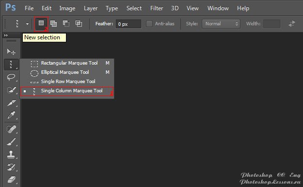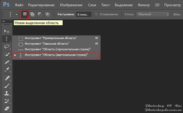| Single Column Marquee Tool - New selection (Инструмент «Область (вертикальная строка)» - Новая выделенная область)Перевод и месторасположение Single Column Marquee Tool - New selection (Инструмент «Область (вертикальная строка)» - Новая выделенная область) на примере Photoshop CC (Eng/Rus). На изображениях ниже вы можете наглядно увидеть месторасположение и перевод Single Column Marquee Tool - New selection (Инструмент «Область (вертикальная строка)» - Новая выделенная область) на примере Английской и Русской версии Photoshop CC (2014). ![]() ![]() |