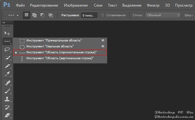 | Перевод Single Row Marquee Tool (Инструмент «Область (горизонтальная строка)»)Перевод и месторасположение Single Row Marquee Tool (Инструмент «Область (горизонтальная строка)») на примере Photoshop CC (Eng/Rus). На изображениях ниже вы можете наглядно увидеть месторасположение и перевод Single Row Marquee Tool (Инструмент «Область (горизонтальная строка)») на примере Английской и Русской версии Photoshop CC (2014). ![]() ![]() |