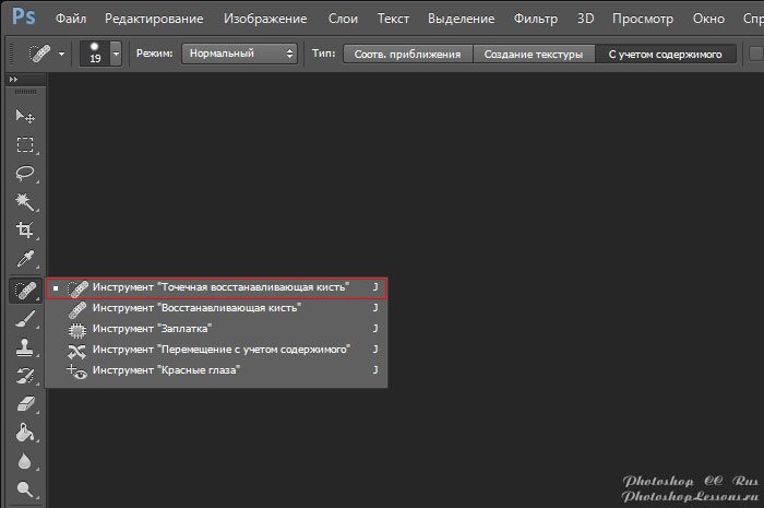 | Перевод Spot Healing Brush Tool (Инструмент «Точечная восстанавливающая кисть» / J)Перевод и месторасположение Spot Healing Brush Tool (Инструмент «Точечная восстанавливающая кисть» / J) на примере Photoshop CC (Eng/Rus). Подробный урок по инструменту «Spot Healing Brush» (Инструмент «Точечная восстанавливающая кисть» / Клавиша «J»). На изображениях ниже вы можете наглядно увидеть месторасположение и перевод Spot Healing Brush Tool (Инструмент «Точечная восстанавливающая кисть» / Клавиша «J») на примере Английской и Русской версии Photoshop CC. ![]() ![]() |