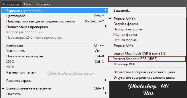 | View - Proof Setup - Internet Standard RGB (sRGB)Месторасположение View - Proof Setup - Internet Standard RGB (sRGB) на примере Photoshop CC (Eng/Rus). На изображениях ниже вы можете наглядно увидеть месторасположение View - Proof Setup - Internet Standard RGB (sRGB) на примере Английской и Русской версии Photoshop CC (2014). ![]() ![]() |