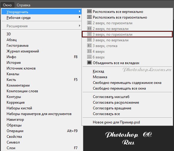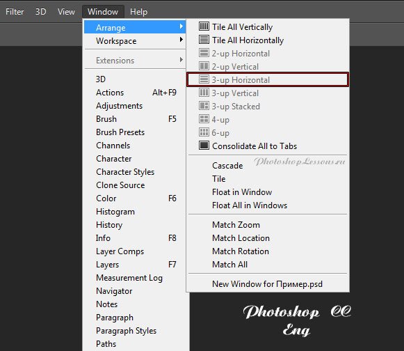 | Перевод Window - Arrange - 3-up Horizontal (Окно - Упорядочить - 3 вверх, по горизонтали)Перевод и месторасположение Window - Arrange - 3-up Horizontal (Окно - Упорядочить - 3 вверх, по горизонтали) на примере Photoshop CC (Eng/Rus). На изображениях ниже вы можете наглядно увидеть месторасположение и перевод термина Window - Arrange - 3-up Horizontal (Окно - Упорядочить - 3 вверх, по горизонтали) на примере Английской и Русской версии Photoshop CC (2014). ![]() ![]() |