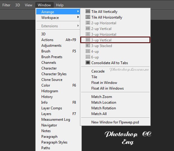 | Перевод Window - Arrange - 3-up Vertical (Окно - Упорядочить - 3 вверх, по вертикали)Перевод и месторасположение Window - Arrange - 3-up Vertical (Окно - Упорядочить - 3 вверх, по вертикали) на примере Photoshop CC (Eng/Rus). На изображениях ниже вы можете наглядно увидеть месторасположение и перевод термина Window - Arrange - 3-up Vertical (Окно - Упорядочить - 3 вверх, по вертикали) на примере Английской и Русской версии Photoshop CC (2014). ![]() ![]() |