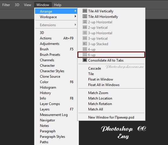 | Перевод Window - Arrange - 6-up (Окно - Упорядочить - 6 вверх)Перевод и месторасположение Window - Arrange - 6-up (Окно - Упорядочить - 6 вверх) на примере Photoshop CC (Eng/Rus). На изображениях ниже вы можете наглядно увидеть месторасположение и перевод термина Window - Arrange - 6-up (Окно - Упорядочить - 6 вверх) на примере Английской и Русской версии Photoshop CC (2014). ![]() ![]() |