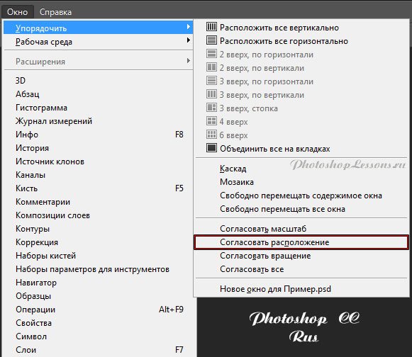 | Перевод Window - Arrange - Match Location (Окно - Упорядочить - Согласовать расположение)Перевод и месторасположение Window - Arrange - Match Location (Окно - Упорядочить - Согласовать расположение) на примере Photoshop CC (Eng/Rus). На изображениях ниже вы можете наглядно увидеть месторасположение и перевод термина Window - Arrange - Match Location (Окно - Упорядочить - Согласовать расположение) на примере Английской и Русской версии Photoshop CC (2014). ![]() ![]() |