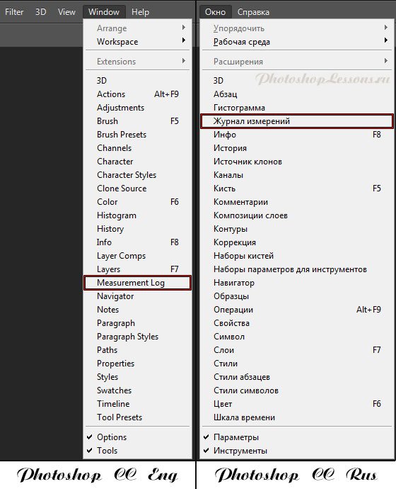 | Перевод Window - Measurement Log (Окно - Журнал измерений)Перевод и месторасположение Window - Measurement Log (Окно - Журнал измерений) на примере Photoshop CC (Eng/Rus). На изображении ниже вы можете наглядно увидеть месторасположение и перевод термина Window - Measurement Log (Окно - Журнал измерений) на примере Английской и Русской версии Photoshop CC (2014). ![]() |