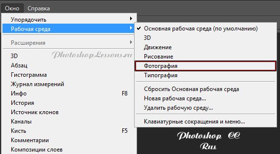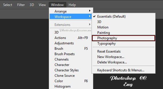 | Перевод Window - Workspace - Photography (Окно - Рабочая среда - Фотография)Перевод и месторасположение Window - Workspace - Photography (Окно - Рабочая среда - Фотография) на примере Photoshop CC (Eng/Rus). На изображениях ниже вы можете наглядно увидеть месторасположение и перевод термина Window - Workspace - Photography (Окно - Рабочая среда - Фотография) на примере Английской и Русской версии Photoshop CC (2014). ![]() ![]() |