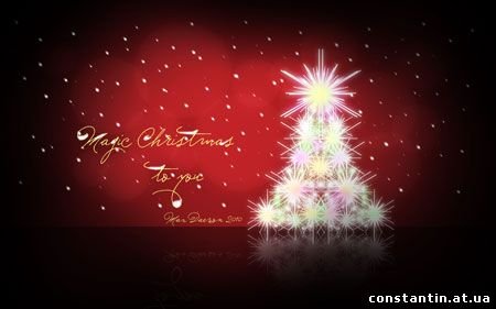 Фотошоп Online | Делаем рождественскую открытку в ФотошопВ этом уроке будем создавать новогоднюю открытку или обои на рабочий стол. Давайте начнем! ![]() Начнем с создания нового документа (CTRL+N) размером 1280х1024 px (в режиме RGB) с разрешением 300 pixels/inch. Используя Paint Bucket Tool ![]() Создаем новый слой и заливаем его цветом #872D2A. ![]() Создаем слой-маску для слоя, кликнув на кнопке Add layer mask ![]() Кистью работаем по краям Слой-маски ![]() Активируем Rectangle Tool ![]() Устанавливаем Fill (Заливка) слоя на 40%. ![]() Теперь мы должны нарисовать снежинку. Для начала создадим базовые линии. Используем Rounded Rectangle Tool ![]() Два раза дублируем (CTRL+J) линию. Активируем Free Transform (Свободное трансформирование) (CTRL+T), чтобы откорректировать положение копий, как на скриншоте ниже. ![]() ![]() Объединяем три линии в группу. Выделяем слои и жмем CTRL+G. Дублируем группу и активируем Свободное трансформирование (CTRL+T), чтобы уменьшить копию и расположить как показано ниже. ![]() Создаем еще две копии лучей и каждую делаем меньше предыдущей. Снова используем Free Transform (Свободное трансформирование) (CTRL+T). ![]() Активируем Custom Shape Tool ![]() Рисуем звезду. ![]() Инструментом Convert Point Tool (Преобразовать точку) (P) с зажатой клавишей SHIFT выбираем внутренние опорные точки. ![]() Активируем Free Transform (Свободное трансформирование) (CTRL+T), кликаем по иконке со звеньями цепи, чтобы сохранить пропорции, и тянем за угловой узелок, чтобы уменьшить звезду. ![]() ![]() Используя Free Transform (Свободное трансформирование) (CTRL+T), перемещаем звезду в центральную часть снежинки и корректируем размер. ![]() Создаем две копии слоя со звездой и применяем Free Transform (Свободное трансформирование) (CTRL+T). ![]() Создаем новый слой, берем жесткую круглую Кисть ![]() Кистью рисуем контур будущей рождественской елки. ![]() Объединяем (CTRL+E) все слои со снежинкой в один. Для этого, зажав клавишу CTRL, выделяем необходимые слои и жмем CTRL+E. Используя Free Transform (Свободное трансформирование) (CTRL+T), корректируем размер снежинки, дублируем (CTRL+J) ее и располагаем, как показано ниже. ![]() Пространство между крупными снежинками заполняем более мелкими. Для этого снова используем Free Transform (Свободное трансформирование) (CTRL+T). ![]() Теперь мы можем скрыть слой с контуром, кликнув по глазику рядом с миниатюрой слоя. ![]() Объединяем в новую группу все слои со снежинками. Дублируем ее, объединяем в один слой (CTRL+E) и применяем фильтр Filter - Blur - Gaussian Blur (Фильтр - Размытие - Размытие в движении). ![]() Располагаем размытый слой под группой со сверкающей елкой. ![]() Теперь мы должны объединить все слои с деревом и размытый слой вместе. Зажимаем CTRL, выделяем и жмем CTRL+E. Дублируем (CTRL+J) получившийся слой, вызываем Free Transform (Свободное трансформирование) (CTRL+T) и отражаем его по вертикали. ![]() Создаем слой маску для дубликата, берем мягкую круглую Кисть ![]() Кистью работаем по Слой-маске ![]() Создаем новый слой, берем жесткую круглую кисть белого цвета с Opacity (Непрозрачность) 20%. ![]() Используем кисть, чтобы нарисовать несколько полупрозрачных окружностей разного диаметра. ![]() Устанавливаем Fill (Заливка) для этого слоя на 34% и меняем режим смешивания на Soft Light (Мягкий свет). ![]() Дублируем (CTRL+J) слой с окружностями, располагаем копию под предыдущим слоем, устанавливаем Fill (Заливка) на 100% и меняем режим смешивания на Overlay (Перекрытие). Также применяем фильтр Filter - Blur - Gaussian Blur (Фильтр - Размытие - Размытие по Гауссу). ![]() Получаем следующий результат: !