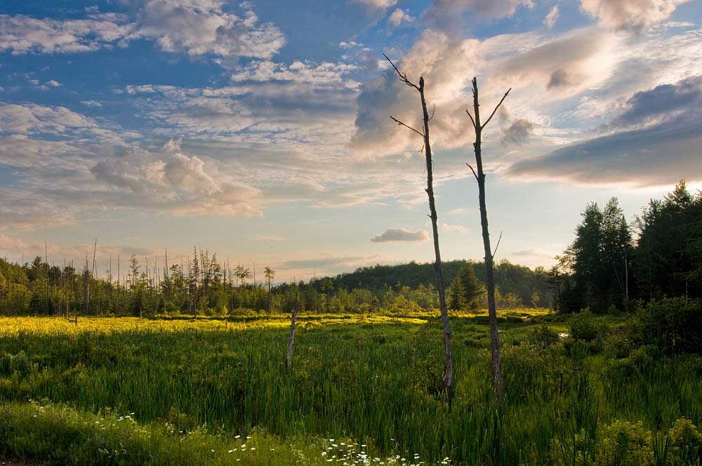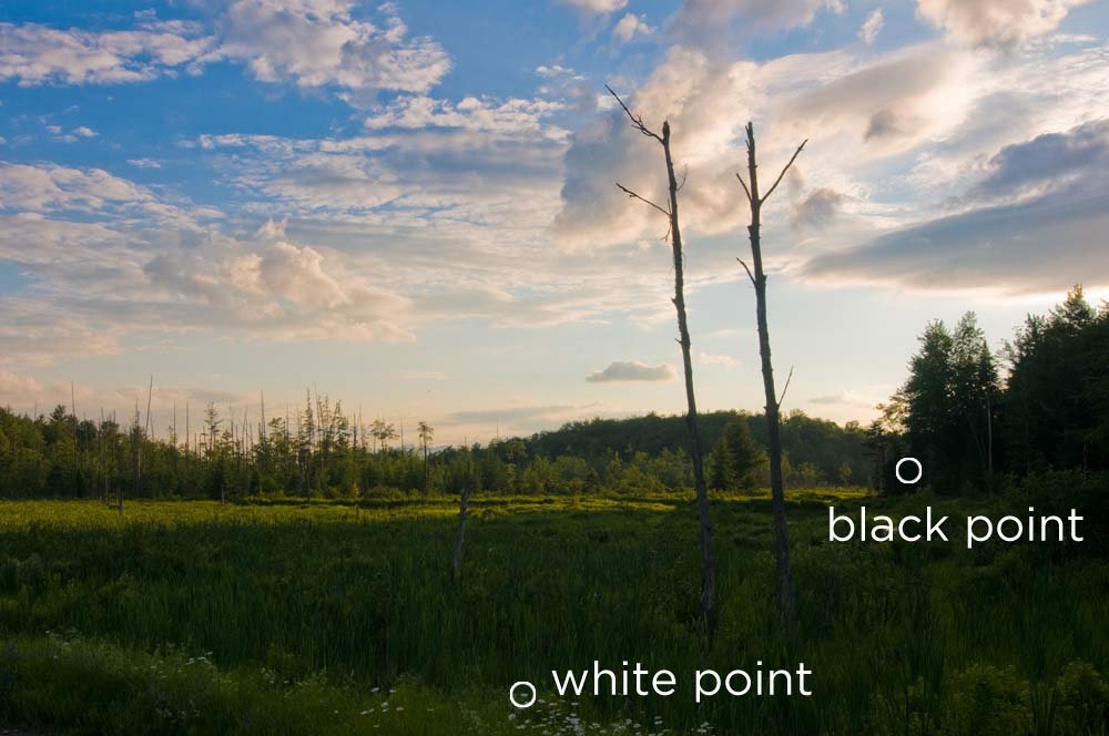 Фотошоп Online | Исправляем неправильную экспозицию средствами PhotoshopДелали снимок красивого неба на фоне пейзажа, но получили вот такое изображение с очень "расстроеной" экспозицией. Но расстраиваться не стоит абсолютно!Оригинал изображения: ![]() Чтобы использовать это простую технику вы должны отредактировать различные участки изображения по вашему усмотрению, чем мы собственно и займемся. Этот метод считается лучше, чем HDR (High Dynamic Range, большой динамический диапазон), т.к. имеет возможность более широко контролировать все участки изображения На данном этапе мы имеем низкую контрастность и затемненный (недоэкспонированный) ландшафт, из-за чего наш пейзаж смотрится, грубо говоря, не впечатляюще. Вам потребуется всего один снимок, нежели три, а то и больше, как предполагает создание HDR. Предпочтительно, если этот снимок вы сделали в формате RAW. Если у вас имеется изображение в формате RAW, то откройте программу Adobe Camera RAW и следуйте инструкциям ниже. Первым делом следует компенсировать тени на ландшафте изображения, для чего используйте Fill Light со значением 30. Следующий шаг - Highlights Recovery, я его использовал со значением 100, чтобы придать небу и облакам более контрастный оттенок. Если ваше изображение снято в другом формате, нежели RAW, то используйте инструмент Shadows\Highlights в Adobe Photoshop Изображение - Коррекция - Тени/Света...(Image - Adjustments - Shadows\Highlights) для придания изображению примерно того же результата, полученного мной: ![]() ![]() Наше изображение состоит из двух частей - неба и земли. Если мы мысленно разделим это изображение на две части, то станет более понятно, что нам редактировать и как. ![]() Теперь, когда мы знаем какие области нам следует обрабатывать, мы должны отрегулировать каждую область в отдельности до требуемого уровня яркости. Для этого откройте Adobe Photoshop и наше изображение Файл - Открыть...(File - Open...). Создайте новый слой уровней Слой - Новый корректирующий слой - Уровни (Layer - New Adjustment Layer - Levels) и выберите "черную точку" и "белую точку" нашего изображения с помощью "пипеток" в появившемся диалоге. Это не всегда применимо, т.к. не обязательно, что вы сможете найти идеально черную или белую точку на изображении, в таком случае просто тяните ползунки гистограммы в окне Уровни до получения нужного результата. Помните, что при редактировании следует наблюдать только за той частью изображения, которую редактируете. Если вы делаете упор на небо - не беспокойтесь о земле, регулируйте ползунки до того момента пока не найдете идеальный вариант для отображения неба. Все это объясняется тем, что в конечном итоге каждая область получит свои настройки ![]() ![]() Вот так должна выглядеть палитра слоев: ![]() Не удивляйтесь, что осветление ландшафта приведет к тому, что небо изрядно выцветет. Для устранения этого эффекта, используйте круглую Кисть ( Brush Tool) на слое Levels, закрашивая ненужные участки черным цветом.Результат: ![]() ![]() Результат работы с кистью: ![]() Вот так выглядит палитра слоев: ![]() Создадим ещё один Корректирующий слой и применим его для затемнения неба: ![]() После манипуляций с небом (изображение выше) я заметил, что верхний левый угол изображения стал слишком насыщенный. Чтобы понизить контраст именно этого участка изображения я создал слой Brightness\Contrast Слой - Новый корректирующий слой - Яркость Контрастность (Layer - New Adjustment Layer - Brightness Contrast) выставив в появившемся д