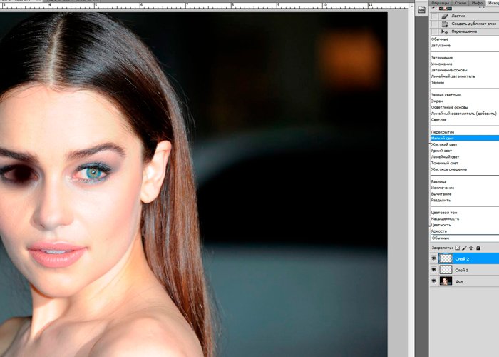 Фотошоп Online | Как изменить цвет глаз в фотошопеЭта статья точно придется по вкусу прекрасному полу. Нет более непостоянных созданий. Денно и нощно стремящихся перекроить свою внешность любым способом. И не всегда эти способы безопасны для здоровья. Многие девушки мечтают избавиться от природного цвета глаз и идут на всевозможные ухищрения, одним из которых являются линзы. Эта статья поможет страждущим разобраться, действительно ли вам стоит отказываться от того, чем щедро вознаградила природа. Программа фотошоп поможет не только кардинально изменить цвет глаз но и подобрать необходимые оттенок, сколь необычным он бы ни был. Я покажу вам приемы, с помощью которых сможете не только перекрасить глаза, но и сохранить узор радужки и цвет зрачка. Существует множество способов для достижения этого эффекта, но все они имеют один единственный недостаток – следы фотошопа уж очень заметны на фото. Поэтому, усилий нам придется приложить чуть больше, а результат мы получим чуть лучше. Жертвой моих сегодняшних экспериментов станет голубоглазая Эмилия Кларк. Обладательница прекрасных каштановых волос и ярких голубых глаз. Посмотрим, пойдут ли Эмилии карие глаза. ![]() Выбираем инструмент «Овальная область» и выделяем радужку глаза. ![]() Кликом по левой клавиши мышки вызываем выпадающий список, в котором ищем команду «скопировать на новый слой». ![]() Сейчас я покажу вам два возможных способа изменения цвета глаз. Вы можете использовать как оба, так и один из них. На верхней панели ищем вкладку изображение – коррекция – варианты». ![]() В открывшемся диалоговом окне нажимаем области «Темнее», «Больше желтого» и «Больше красного» дабы добиться коричневого оттенка глаз. Для вашего удобства сверху имеется сравнение исходного изображения и результата. ![]() Вот, что у меня получилось. ![]() Все, что заходит на линию ресниц, стираем ластиков, который найдем на боковой панели инструментов. Мой вам совет – воспользуйтесь увеличением, дабы аккуратно выполнить работу. Как видите, мы добились того чего хотели. Перекрасили глаз в коричневый цвет. При должной старательности можно было бы добиться нужного оттенка и остановиться на этом. Но я предпочла показать вам еще один способ и уже с помощью него сделать натуральный цвет. Создаем новый слой. Берем мягкую кисть и делаем пару кликов по глазу, выбрав цвет #170101. И переходим к окну слоев, где меняем режим наложения на мягкий свет. Вот что имеем в итоге. ![]() ![]() ![]() На мое усмотрение получилось несколько темновато. Поэтому я уменьшу непрозрачность слоя до 50 процентов. ![]() ![]() Как вы, наверное, заметили, когда мы работали кистью, область покраски была гораздо больше, чем нам требовалось. Сейчас мы могли бы стереть ее ластиком, но я не буду этого делать. Ибо в нашем конкретном случае она не заметна. Единственное место, где я воспользуюсь ластиков – это зрачок. Теперь повторите те же манипуляции со вторым глазом. Все! Мы научились изменять цвет глаз в фотошопе. Довольно просто, не так ли? Давайте теперь сравним изображения. Исходное и получившееся. ![]() ![]() |