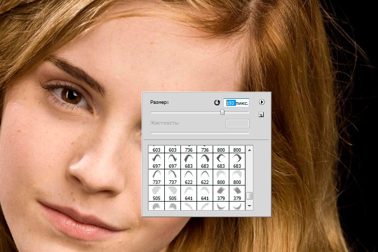 Фотошоп Online | Как накрасить глаза в фотошопеЭтот урок особенно придется по вкусу девушкам. Где, как ни в фотошопе мы можем попробовать различные варианты макияжа и оценить со стороны, подойдут ли данные цвета нашим прекрасным глазам? А может быть мы захотим чуть подправить неудачный макияж, дабы несколько приукрасит нашуфотогграфию? В этом уроке я расскажу вам как накрасить глаза в фотошопе. Несмотря на кажущуюся сложность выполнить эту задачу сможет даже новичок. Накрасить глаза в фотошопе очень просто. Для этого нам понадобиться загрузить набор кистей, приложенных к уроку. Нам понадобятся тени и ресницы. Как именно установить набор вы можете прочесть здесь. Открываем исходное изображение. В качестве примера я возьму Эмму Уотсон. Как видите, на фото красавица без макияжа. Давайте для начала попробуем нанести тени. Для накладывания теней нам необходимо создать новый слой, так как нам придется трансформировать его. ![]() ![]() Выбираем инструмент «кисть». ![]() Теперь ищем подходящую форму теней. Тут уж как вам захочется. Выбираем любую. Она не обязательно должна подходить под размер глаз. Трансформировать и подогнать мы сможем любую. ![]() Теперь выберем цвет теней. Эмма – девушка с карими глазами, ей прекрасно подойдут коричневые тени. ![]() Делаем клик кистью по рабочей области и нажимаем левую клавишу мыши. Меняем размер кисти. В мое случае мне подойдет примерно 193 пикселя. ![]() Делаем клик по любой точке рабочей поверхности. ![]() Теперь перенесем тени к глазу и подгоним по размеру. На панели инструментов выбираем «перемещение», ставим курсор на тени и подтаскиваем их к глазу. ![]() Теперь тянем за угловой маркер и поворачиваем тени так, чтобы верхняя граница легла по глазу. ![]() Тянем за нижний маркер, располагающийся в центре, и сжимаем их. ![]() ![]() Давайте чуть-чуть изменим форму теней. Оттянем уголок чуть дальше. Для этого мы нажимаем левую клавишу мыши и выбираем трансформацию. ![]() Тянем за уже привычные нам маркеры к кончику брови. ![]() И вот что получаем в результате. ![]() ![]() А теперь создаем новый слой и проделываем то же самое со вторым глазом. Тени мы нанесли. Осталось накрасить ресницы. Загружаем новый набор и приступаем. Проделываем с ресницами те же действия, что и с тенями. Если вам интересно, и вы хотите закрепить полученные знания – здесь урок по наложению ресниц. Я решила наложить Эмме длинные ресницы, создающие эффект накладных только на верхнее веко. Сводим слои и фото готово! ![]() Теперь давайте сравним результат «до» и «после». ![]() Хорошо получилось, не так ли? А главное - просто! Вот так легко и быстро можно накрасить глаза в фотошопе. Экспериментируйте с формой теней и ресниц. |