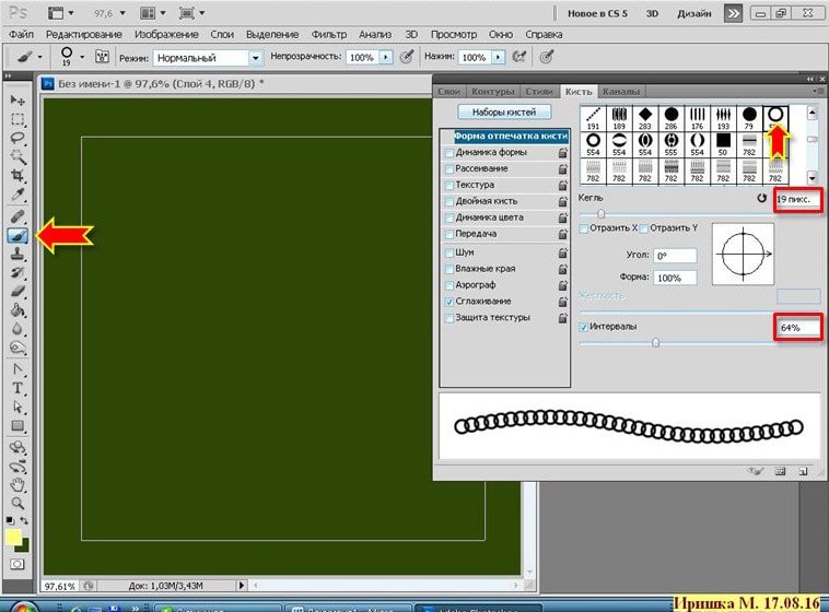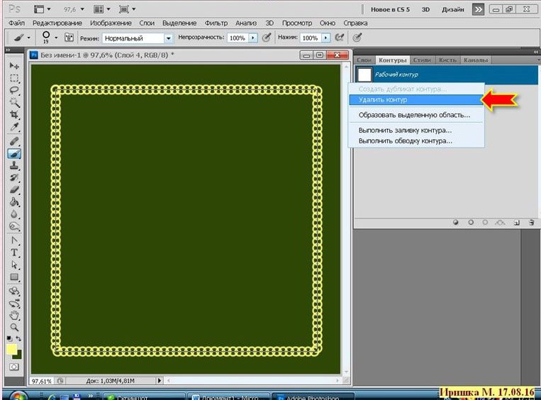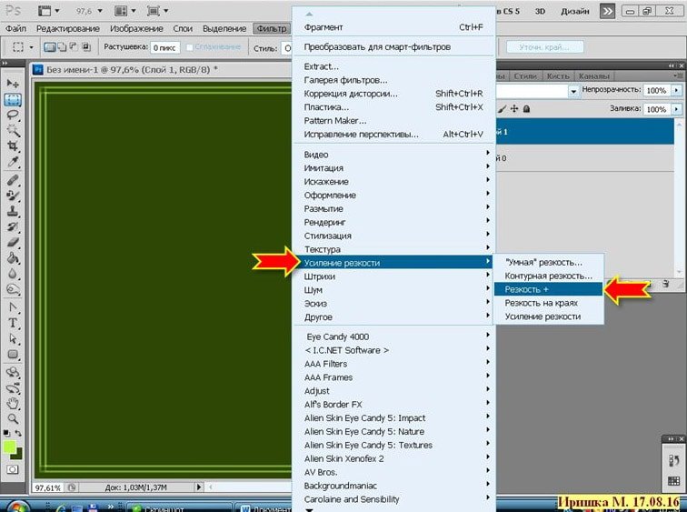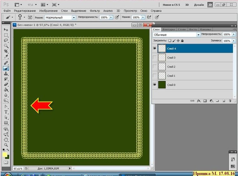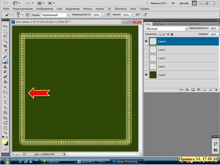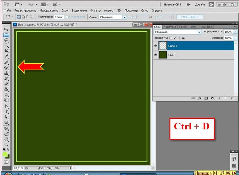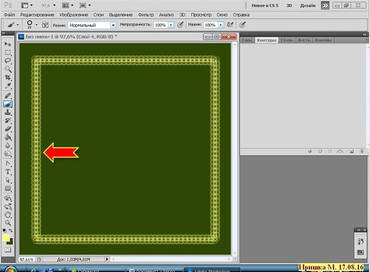 Фотошоп Online | Как быстро создать двойную рамочкуВ этом коротеньком уроке я расскажу, как создать тонкую рамочку - обводку, используя фильтр, который встроен в программу. Как я уже писала ранее, мои уроки рассчитаны на начинающих фотошопистов, этот урок тому подтверждение. Хотя бывает и так, что сложное умеешь, а простого, даже не знаешь. И так приступим. Кстати готовые рамки можно скачать здесь. ![]() Открыть Photoshop CS5 и создать Новый документ (CTRL+N), размер любой, можно для наглядности залить цветом: ![]() Вот так: ![]() Создать новый слой. Взять инструмент Прямоугольная область и начертить прямоугольник: ![]() ![]() Выполнить обводку. Зайти в меню Редактирование - Выполнить обводку. Поставить цвет, ширину: ![]() ![]() Отменить выделение CTRL+D. Получим такой результат: ![]() Зайти в меню Фильтр - Оформление - Фрагмент: ![]() Результат: ![]() Зайти в меню Фильтр - Усиление резкости - Резкость+ ![]() Результат: ![]() Вот и всё! Быстро и просто. Можно так же применить к этой рамочки стиль слоя, поменять цвет и т.д. Это вариант, если взять ширину обводки 5 px. и два раза применить фильтр Резкость+ ![]() А это вариант если ширина 10 px. : ![]() А эта рамочка выполнена немного по-другому: (это я уже эксперементирую) ![]() Создать новый слой. Взять инструмент Прямоугольник : ![]() Выставить такие параметры: ![]() Нарисовать прямоугольник: ![]() Взять инструмент Кисть, выбрать фигурную, настроить её: ![]() Зайти в Контуры и выполнить обводку контура кистью: ![]() Получится вот так: ![]() Контур удалить: ![]() Зайти в меню Фильтр - Оформление - Фрагмент. Такой результат: ![]() Применить два раза фильтр Резкость+ ![]() Можно ещё поэксперементировать. Пробуйте, творите и у Вас всё получится! |