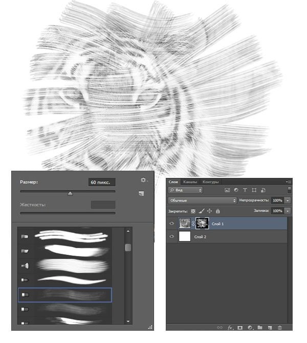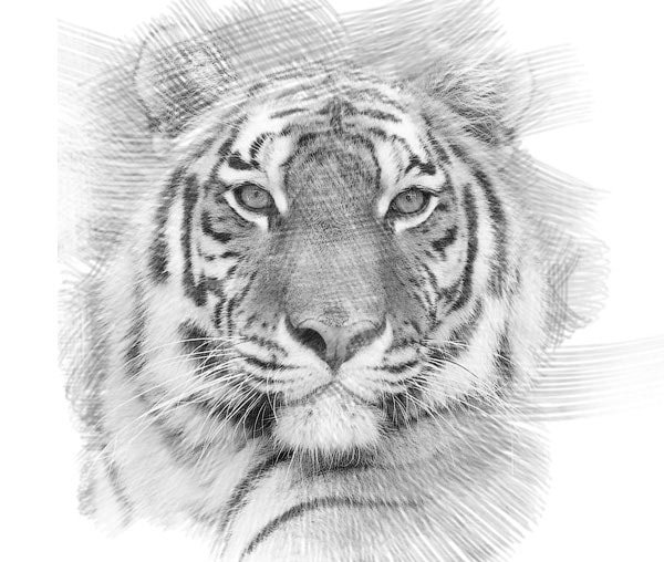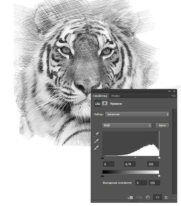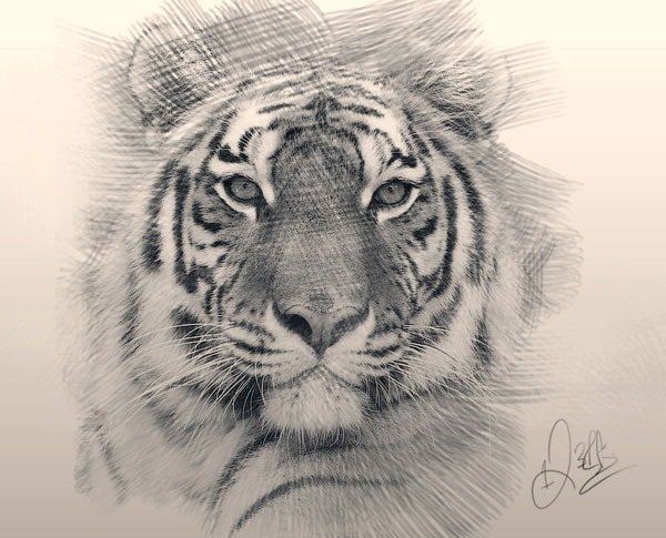 Фотошоп Online | Как в Photoshop сделать из фото рисунок карандашомЧтобы научиться рисовать, требуется особый талант и годы труда. Но с программой Photoshop вы легко сможете достичь этого за короткий период. Из этого урока вы узнаете, каким образом создаются рисунки из фотографии с помощью кистей. Если в работе использовать графический планшет то можно достичь ещё лучшего эффекта. В похожем уроке Портрет карандашом в Фотошоп рассматривался еще один вариант создания из фотографии карандашного рисунка. Итак, начнём! Вот результат, который должен получиться: ![]() 1. Настройка изображенияШаг 1Открываем наш исходник в программе Photoshop. Кликнем два раза по слою Фон, чтобы разблокировать его и даем название ему Слой 1. Создаём Новый слой и называем его Слой 2. Устанавливаем цвет переднего плана белым, а затем с помощью инструмента Заливка(G), заливаем его белым цветом. Поместим Слой 2 под слоем с исходником. ![]() Цветное изображение преобразуем в чёрно-белое. Делаем активным слой с фотографией и заходим в меню Изображение – Коррекция - Цветовой тон / Насыщенность и в появившемся окне настроек уменьшаем Насыщенность до -100. ![]() 2. Создание эффекта рисункаШаг 1Переходим к созданию самого эффекта рисунка. Добавляем к слою с изображением тигра слой-маску. Для этого кликаем по иконке слой-маски и сразу заливаем её чёрным цветом при помощи инструмента Заливка(G). ![]() Дальше, переключаем цвет переднего плана на белый. Цвет заднего плана должен быть чёрным. Активируем инструмент Кисть(B).Выбираем из набора кистей Плоскую тупую с короткой жёсткой щетиной, устанавливаем размер 60 пикс. и начинаем наносить штрихи по чёрной слой-маске (с кистями и размерами можете поэкспериментировать и выбрать другую, понравившуюся). ![]() Шаг 2Продолжая наносить мазки белой кистью на маске слоя мы восстанавливаем изображение, придавая ему текстуру рисунка. Старайтесь, чтобы мазки кисти были похожи на штриховку или пересекающую штриховку, которая имитирует технику карандашного рисунка. ![]() Шаг3Инструментом Перемещение(V) расположите изображение тигра по центру документа и добавляйте штрихи до полного удовлетворения. По завершению продублируйте этот слой клавишами Ctrl+J. ![]() Шаг 4Теперь нужно усилить эффект рисунка. Заходим в меню Изображение – Коррекция – Уровни и устанавливаем настройки для RGB канала как на скрине, тем самым усиливаем контраст и выделение штрихов. После этого объединяем все слои вместе Ctrl+Alt+Shift+E. ![]() Шаг 5На полученном результате можно и остановиться, но лучше потратить еще пару минут и сделать рисунок максимально приближенным к настоящему, сделанному на бумаге. Делать это будем с помощью градиента, постараемся добиться эффекта фотографии рисунка.Кликаем правой мышкой по слою с рисунком и в выпавшем меню идем в опцию Параметры наложения (можно просто дважды кликнуть на слое левой мышкой). Выбираем стиль слоя Наложение градиента, устанавливаем значения как на скрине. ![]() Вот что должно получиться: ![]() Шаг 6И в завершении можно добавить ещё одну коррекцию Уровни для канала RGB с такими настройками 18, 0.73, и 248. Подпишите свою работу и на этом остановимся, что бы полюбоваться конечным результатом. Итоговый результат: ![]() |
