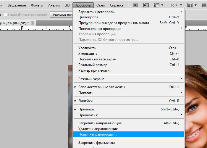 Фотошоп Online | Работа с направляющими и линейками в фотошопе: вызов, удаление, изменениеЕсли вы собираетесь научиться рисовать в фотошопе – вспомогательные направляющие вам ни к чему, потому, как известно, что художники линейками не пользуются. Ну а если же вы решили ступить на тернистый путь веб дизайнера – вы зашли по адресу. Потому как в этом уроке мы разберем направляющие. А именно, как включить их (так сказать, получить такую возможность), поставить и убрать. Для чего вам пригодится это знание? Порой, требуется измерить изображение практически по пикселям. Но не будете же вы, в самом деле, пересчитывать каждый? Потому, достаточно просто сделать направляющую направляющую, отмерив нужный отрезок. Многие дизайнеры используют направляющие для разграничения колонок сайта. Хотя, применений им можно найти очень много. Тут уж, кто на что горазд. Я порой использую их для выделения нужной области. Ограничиваю объект, требующий доработки по завершению работы. Наряду с направляющими существует еще один инструмент, который основательно упростит нам жизнь. И называется он линейки. Разработчики Adobe Photoshop учли множество крайне необходимых мелочей, за что крайне уважаемы мной. Пользоваться линейкой в фотошопе крайне просто. Представьте себе, что лист бумаги, на котором вы рисуете, имеет шкалу вверху и сбоку. Думаю, что аналогия предельна понятна. Потому, думаю, вопрос «зачем нужны линейки в фотошопе?» отпадает сам собой. Потому, давайте не будем растекаться мыслью по древу и узнаем, как поставить направляющие в фотошопе. Для работы я возьму изображение любимой мной Миранды Керр. На красивом изображении и работать приятней. Вот так выглядит окно перед началом работы. ![]() А теперь нам следует включить линейку. Или другими словами вызвать. Для этого мы ищем на верхней панели вкладку «Просмотр» и выставляем галочку напротив команды «Линейки». Теперь они отображаются на рабочей области. ![]() ![]() Дабы пользоваться линейками мы должны знать величину отрезка. Запомните, что линейки в фотошопе можно изменять. Вам доступны линейки в сантиметрах, пикселях, миллиметрах, дюймах и тп. Вызвать меню для замены единицы измерения можно кликнув левой клавишей мышки по самой линейке. ![]() Для распечатывания изображений вам пригодится линейка в сантиметрах. Для сайта – в пикселях. В дюймах принято работать с визитками. Итак, линейки у нас есть, теперь давайте сделаем направляющие линии. Для этого поставьте курсор на линейку, нажмите правую клавишу мыши и тяните. Так выглядит работа в процессе: ![]() А вот завершение: ![]() Соответственно, горизонтальная направляющая линия вызывается тем же образом с верхней линейки. Теперь я покажу вам несколько фокусов при работе с направляющими. Допустим, вам требуется поставить направляющую в сантиметре он края изображения, а высчитывать на линейке лень. Ну, либо точность требуется большая, а на свой орлиный глаз вы не рассчитываете особо. В таком случае мы проделываем следующие манипуляции: на верхней панели находим вкладку «Просмотр» и выбираем команду «новая направляющая». Кликаем. ![]() Появляется окно, где мы задаем следующие характеристики. ![]() Вуаля! У нас имеется направляющая на расстоянии 1 см от края изображения. ![]() Удалить направляющие в фотошопе очень просто . Достаточно зайти в ту же вкладку «Просмотр» и выбрать в списке
