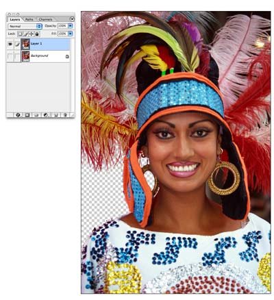 Фотошоп Online | Отделяем сложные объекты от основного фонаИз этой статьи вы узнаете, как выделять сложные объекты в Фотошоп. К таким объектам можно отнести: волосы, перо, дерево, и все остальное, что имеет ворсистые и мохнатые поверхности. Качественное выделение таких объектов невозможно сделать с помощью обычного Лассо или Пера. В этой статье вам предлагается использовать каналы, чтобы легко замаскировать сложные объекты, оставляя при этом чисто выделенные края. Эта техника сэкономит Вам уйму времени. На данном этапе цель урока заключается в том, чтобы удалить розовый фон с левой стороны девушки. Как вы должно быть заметили, где-то между перьями там и тут просвечивают розовые пятна, нам их тоже следует убрать.Шаг 1.Дублируйте оригинальное изображение и в дальнейшем работайте с копией. Фоновый слой спрячьте - кликните по глазику рядом с ним.Перейдите в меню Select-Color Range (Выделение - цветовой диапазон). Когда окошко появится, выберите там первую слева пипетку и кликните ею по розовому фону на изображении.Вы заметите, что выбранный цвет стал белым в диалоговом окне. Увеличьте значение параметра Fuzziness (Разброс) до тех пор, пока изображение не станет полностью черным, а выделенная область чисто белой. ![]() Заметка: чтобы добавить цвет к выделению кликните по изображению пипеткой со знаком "+" или зажмите Shift. В некоторых случаях (например, выделение деревьев от неба) этих операций бывает достаточно. Вы нажимаете ОК в диалоговом окне, а на основном документе Delete, чтобы удалить фон.Но здесь случай посложнее.Шаг 2.После нажатия на кнопке ОК, в документе появится выделение. Переключитесь на палитру Каналов. Кликните внизу палитры по кнопке (Сохранить выделенную область на новом канале) - появится новый канал "Альфа 1". Нажмите Ctrl+D, чтобы снять выделение. Далее кликните по Альфа каналу - в главном документе отобразится черно-белый вид канала.Достоинство в использовании каналов - возможность редактировать выделение без влияния на оригинальное изображение. Черный цвет - это области, которые мы хотим сохранить, а белые - те, которые мы хотим удалить. ![]() Шаг 3.Вы должно быть заметили, что на канале отображаются также серые области. Как же поступить с ними? Их нам нужно превратить или в черные или в белые, другого варианта не дано. Как это сделать? Есть быстрое решение!Зайдите в меню Image-Adjustments-Levels.. (Изображение - Коррекция - Уровни). В диалоговом окне вы увидите гистограмму с тремя ползунками - переместите крайние ползунки чуть ближе к середине. После этих действий серые области должны будут исчезнуть. ![]() Шаг 4.Вы помните, что наша цель удалить только розовый фон? Отлично! В канале, как видите, выделились также губы и перья справа. Нам нужно убрать их из розового выделения!Возьмите черную кисть с твердыми краями. Покрасьте ею по тем частям, которые не нужно удалять - здесь губы и перья справа. Если наоборот нужно что-то удалить - переключитесь на белую кисть. ![]() Шаг 5.Иногда бывает сложно угадать, какие части удалить, а какие оставить. Кликните на глазик рядом с RGB каналом. Оригинальное фото станет теперь видимым под прозрачной маской.Отключите глазик, если хотите вернуться в черно-белый вид. ![]() Шаг 6.Зажмите Ctrl и кликните по Альфа каналу - появится выделение. Кликните по RGB, чтобы увидеть цветное изображение. Перейдите на палитру слоев. Выберите рабочий слой и нажмите 