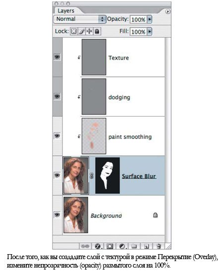 ![]() Это действие создаст черную слой-маску и спрячет размытый слой, проявив исходное изображение.Теперь просто закрасьте Маску слоя ![]() Участок, с которым вы работаете, может быть едва видимым, если вы закрашиваете все. Вы можете отключить видимость фонового (background) слоя, чтобы посмотреть, не осталось ли каких промежутков. Чтобы это сделать, кликните по иконке глазика напротив миниатюры фонового (background) слоя в палитре слоев. ![]() Аккуратно обходите те участки, которые необходимо сохранить во время закрашивания «плохой» кожи – глаза, губы и т.д. На данном этапе у вас должно получиться что-то похожее на изображение ниже: ![]() Шаг 3.Кожа будет сглаженной, но цвета и тона могут смотреться пятнами. Чтобы исправить это, создайте новый слой, но для этого зажмите клавишу Option/Alt и кликните по иконке создания нового слоя (new layer), чтобы вызвать диалоговое окно с параметрами нового слоя (new layer). Прим. переводчика: если после совершенных манипуляций у вас не открылось окно, как у автора, попробуйте пойти следующим путем: Слой – Новый – Слой (Layer – New – Layer), теперь перед вами должно открыться необходимое окно. Установите галочку напротив Использовать предыдущий слой для создания обтравочной маски (Use Previous Layer To Create Clipping Mask).![]() Это позволит маске предыдущего слоя контролировать новый закрашиваемый слой. Возьмите большую мягкую кисть, и образец цветов с размытой кожи (Option/Alt + клик, чтобы превратить курсор в Пипетку ![]() На данном этапе вам необходимо восстановить некоторые намеки на прежнюю кожу. Выделите размытый слой, кликнув по его миниатюре в палитре слоев. Переместите слайдер непрозрачности (opacity) немного влево, чтобы проявить прежнюю кожу. ![]() Шаг 4.Теперь нам надо создать слои Осветление (Dodge) и Затемнение (Burn) и высветлить любые непривлекательные морщинки слева. Option/Alt + клик по иконке создания нового слоя (new layer) в нижней части палитры слоев. Это действие откроет диалоговое окно создания нового слоя (new layer). Прим. переводчика: если после совершенных манипуляций у вас не открылось окно, как у автора, попробуйте пойти следующим путем: Слой – Новый – Слой (Layer – New – Layer), теперь перед вами должно открыться необходимое окно.Измените режим (mode) на Мягкий свет (Soft Light), а затем отметьте Выполнить заливку нейтральным цветом режима «Мягкий свет» (Fill With Soft-Light-Neutral Color). Это действие зальет новый слой 50% серым цветом (50% gray). Вы должны сохранять маску, которую создали к размытому слою.Используйте инструмент Осветлитель ![]() В данном случае, кожа женщины проявилась будучи очень сглаженной с небольшими вкраплениями текстуры исходной кожи. Чтобы уберечь изображение от эффекта пластики, необходимо добавить еще больше текстуры к коже. Я экспериментировал со всеми видами различных подходов. Хотя я не совсем доволен представляемой техникой, на данный момент она мне подошла для имитации текстуры кожи. Я продолжу экспериментировать до тех пор, пока не найду лучшую текстуру. Шаг 5.Итак, снова создайте новый серый слой перекрытие (overlay). Option/Alt + клик по иконке создания нового слоя (new layer) в нижней части палитры слоев, чтобы открыть диалоговое окно создания нового слоя. Установите галочку напротив Использовать предыдущий слой для создания обтравочной маски (Use Previous Layer To Create Clipping Mask), выберите Перекрытие (Overlay) из выпадающего меню режимов (mode) и отметьте Выполнить заливку нейтральным ц