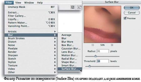Фотошоп Online | Ретушируем кожу лица в фотошопКогда вы упоминаете о ретуши, люди часто думают о нереально безупречных моделях высокой моды и девушках с обложки, которых они видят в журналах. В фотографиях такого рода нет необходимости достигать реалистичности. Вместо этого фотографы пытаются создать из невозможного возможное. Безупречная кожа допускается, но в то же время она не должна выглядеть как пластик.Часто ставится задача создать применить подобный эффект к человеку, который даже рядом не стоит с идеалом. Вы должны знать, как полностью восстановить кожу, если вас к этому призывает поставленная задача. Конечно же, на сегодняшний день нет ничего невозможного. В этом примере мы будем работать со снимком этой привлекательной женщины пятидесяти лет. ![]() Неудивительно, что в нашей культуре, одержимой молодыми, фотографов просят сбросить с лиц различных писателей, музыкантов, актеров и актрис три десятка лет. Поскольку кино и телевидение до сих пор имеет низкое разрешение, люди часто не могут определить, какого возраста их любимые кумиры. Я не собираюсь здесь кого-то разоблачать, поэтому мы просто будем полностью реконструировать кожу этой женщины. Результат: ![]() ![]() Шаг 1.Как обычно мы начинаем с создания нового слоя. В данном случае мы продублируем фоновое изображение (background) посредством перетаскивания его на пиктограмму создания нового слоя (create new layer) в палитре слоев. Наша задача размыть эту копию в качестве основы для новой кожи, поэтому давайте переименуем слой (дважды кликните по названию копии слоя) и назовите его Размытие по поверхности (Surface Blur).![]() Выберите Фильтр – Размытие – Размытие по поверхности (Filter - Blur - Surface Blur). ![]() Фильтр Размытие по поверхности (Surface blur) появляется в версии Photoshop CS2, он особенно часто применяется в подобных операциях. Это размытие сохраняет переходящие края, но в то же время управляет созданием очень гладкого размытия. Слайдер Радиус (Radius) контролирует интенсивность размытия, а слайдер Порог (Threshold) устанавливает, насколько сильно изображение должно оставаться резким. В отличие от других фильтров размытия, высокая настройка Порога (Threshold) дает больший эффект размытия. Вам нужно скорректировать слайдеры так, чтобы разгладить абсолютно все морщины и текстуру кожи, оставив основные элементы незатронутыми.![]() Примечание: пользователи версий CS могут воспользоваться фильтром Медиана (Median) Фильтр – Шум – Медиана (Filter – Noise – Median). У этого фильтра есть только один слайдер, но вы можете получить похожий результат, хотя и не такой хороший разглаживающий эффект. Шаг 2.Нам нужно спрятать этот размытый слой Маской слоя (layer mask). Нажмите и удерживайте клавишу Option/Alt и кликните по иконке Маска слоя (Layer mask) в нижней части палитры слоев