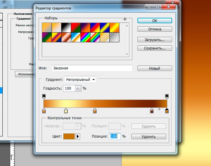 Теперь возвращаемся к окну градиента. Кликаем на ползунок. И в окошке выбора цвета просто вбиваем эти цвета в нужной последовательности, пользуясь схемой. Я чуть сдвинула ползунки, как видите. Вот, что у нас получилось в итоге: ![]() Как видите, наш градиент действительно золотой. ![]() Дабы изменить форму нашего золотого градиента, мы можем вернуться к окну «градиент» и изменить настройки. Допустим, попытаемся сделать градиент угловым. ![]() ![]() Довольно интересный эффект, не правда ли? При помощи изменения стиля градиента вы можете создать множество интересных эффектов. Как видите, сделать золотой градиент или золотой фон необходимого вам оттенка или формы не составит труда даже для начинающего дизайнера. Данный навык пригодится для создания множества интересных элементов, которые могут вам пригодится для создания дизайн – макета сайта. |