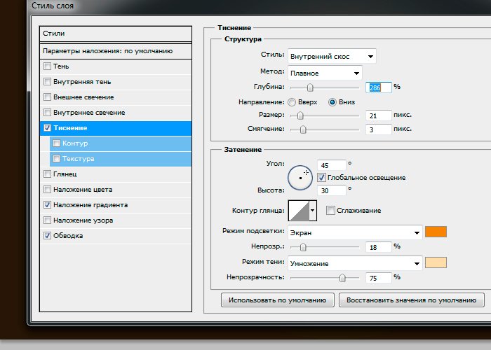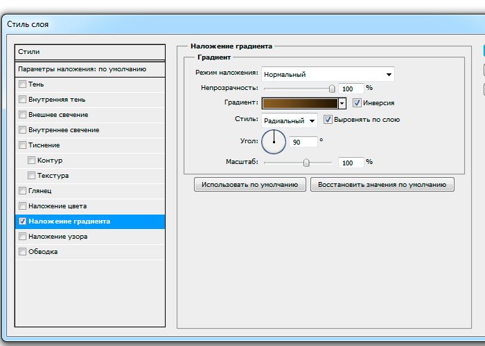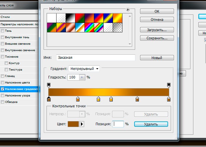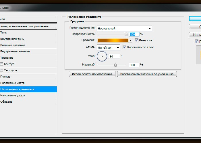 Фотошоп Online | Как сделать текст золотом в фотошопеОдним из наиболее интересных инструментов в фотошопе являются «параметры наложения». Я бы назвала его одним из самых важных для веб дизайнера. Благодаря параметрам наложения вы сможете претворить в жизнь множество интересных эффектов, которые пригодятся вам в разработке дизайна сайта. Давайте попытаемся изучить его на примере создания текста золотом в фотошопе. Где нам может пригодиться золотой текст? Да практически везде. Начиная с логотипа и заканчивая буклетом. И вы даже не представляете, насколько часто клиенты требуют сделать подобную вещь, несмотря на обилие модных направлений в дизайне. Потому, настоятельно советую изучить как быстро создать эффект золотого текста. Для начала нам следует создать заготовку. А именно рабочую область с подходящим градиентом. Создаем новый документ. И новый слой. Для этого нажимаем комбинацию клавиш ctrl+shift+n. Нам необходимо залить новый слой любым цветом. На правой панели ищем инструмент «заливка», выбираем его и делаем клик по новому слою. ![]() Теперь нам следует обратиться к окну слоев. Дабы золотой текст смотрелся органично, мы создадим для него подложку. Для этого в окне слоев выбираем новый слой, кликаем по нему правой клавишей мыши и вызываем выпадающее меню со списком команд. Нас интересуют «параметры наложения». ![]() Выбираем «градиент» и в появившейся вкладке вбиваем следующие настройки: ![]() А теперь делаем клик по полоске «Градиент». Нам следует задать цвета. Делая клик по нижним ползункам, мы получаем возможность выбрать цвет. Для того, чтобы золотой текст выглядел натурально и правдоподобно, нам нужно создать переход от насыщенного коричневого к желтому. Эдакое сусальное золото. Установите цвета: #292216 и #755d32. Жмем «ок» и получаем наш фоновый слой. ![]() Теперь выбираем инструмент текст и пишем любую надпись. Шрифт тоже на ваше усмотрение. Проявите фантазию. Для тех, кому интересно, я использовала шрифт OlgaCTT и DINPro. ![]() А теперь приступаем к долгожданным настройкам параметров наложения. Где их найти вы уже знаете. Нам следует выполнить эффекты: тень, тиснение, обводка и градиент. Настройки градиента: ![]() Как вы можете заметить, ползунков стало гораздо больше. Сделать новый ползунок очень просто. Достаточно сделать клик по цветной полосе. Теперь перечислю цвета слева направо: #7c561c #af7623 #f1bc39 #dda536 #875d1e #875d1e Вот, что у нас получилось. ![]() Да, надпись с золотистым градиентом, но сказать, что у нас получился текст из золота можно с большой натяжкой. Нам все-таки не хватает еще нескольких эффектов. Кстати говоря, подскажу вам, как можно быстро и просто подобрать золотой градиент. Найдите фото золотого изделия, подходящее вам по тону и с помощью пипетки скопируйте цвета для градиента. Настало время обводки. Не забудьте выбрать в «типе обводки» градиент. ![]() Цвета обводки слева направо: #dba325 #af7725 Смотрим промежуточный результат: ![]() Добавляем тиснение: ![]() Цвета сверху вниз: #c7811e #f6daaa И тень цвета: #342b1b ![]() Смотрим промежуточный результат: ![]() Осталось только применить все вышеописанные настройки к нижней надписи. Не волнуйтесь, вбивать все заново не придется. В каждой настройке достаточно просто нажать кнопку: ![]() И уже после, на новом слое нажать: ![]() Настройки это параметра применятся к слою автоматически. Давайте же посмотрим, вышел ли у нас текст золотом
